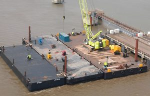 We are excited to announce the addition of our new flat top pontoon barge “JML5019” to our pontoon fleet, boasting an impressive total deck capacity/deadweight of 1,700t. JML5019 is also wider than many other similar barges at 18.9m meaning it can accommodate a crawler crane up to 300t comfortably.